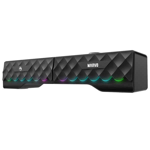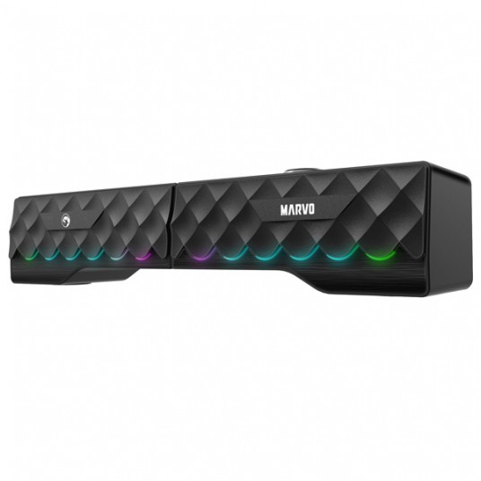 Sondbar Marvo to bardzo ciekawa konstrukcja 2 w 1, która umożliwia stosowanie głośnika w pozycji poziomej w formie soundbaru do umieszczenia np. pod monitorem lub dzięki możliwości rozłączenia swobodnego ustawienie 2 głośników Stereo.