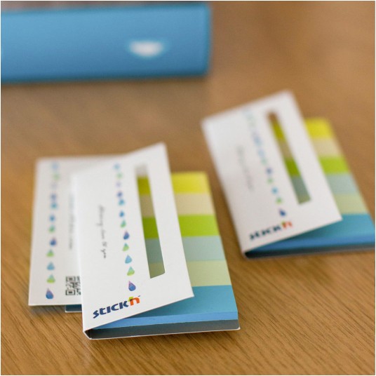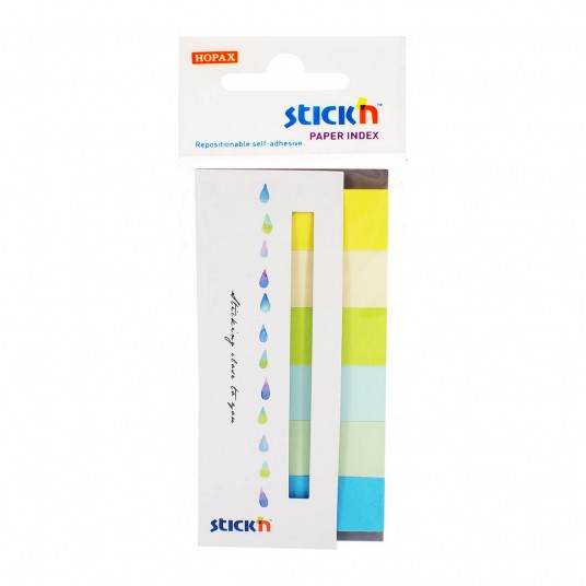 Zestaw w papierowym etui zawiera 6 bloczków 45 × 15 mm po 30 karteczek każdy, w sumie 180 zakładek w 6 różnych, neonowych kolorach.