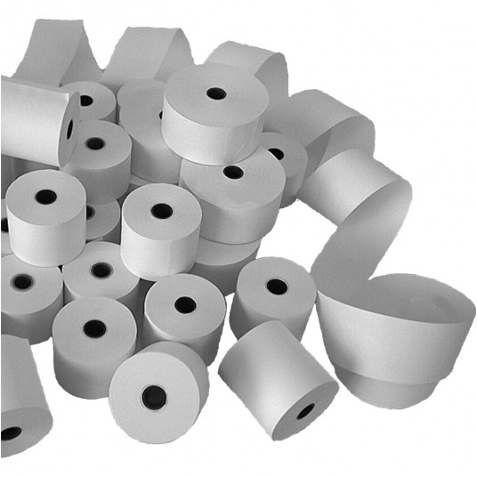 Rolki wykonane z białego papieru termicznego o gramaturze 55 g/m²