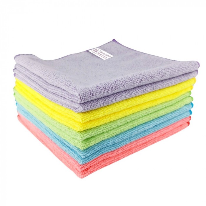 Komplet ściereczek z mikfrofibry w 5 kolorach do skutecznego usuwania brudu, tłuszczu i kurzu.
