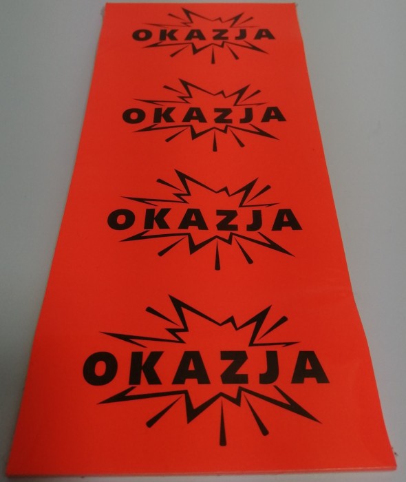 ETYKIETA SAMOPRZYLEPNA OKAZJA CZERWONA