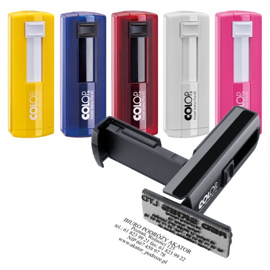 odbicie: do wyboru czarne, granatowe, czerwone, zielone, fioletowe, blanco (sucha tuszownica pozwala uzupełnić dowolnym kolorem tuszu)